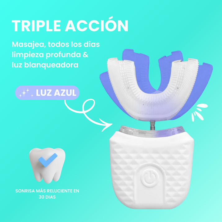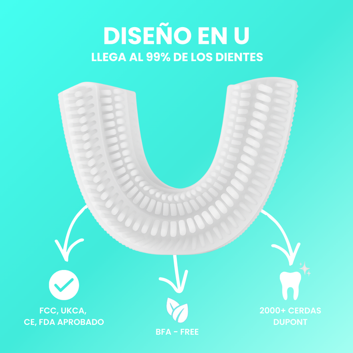 BriloBrush utiliza Tecnología UltraSonic Clean combinada con un cabezal en forma de “U” que integra las mismas micro-cerdas que un cepillo dental tradicional, distribuidas estratégicamente en 360° para envolver toda la arcada dental.